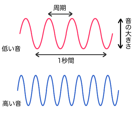 音は、空気(など)を振動させながら 伝わっていくものです。 その音は「波」としての性質を持っています。 「音が波ですって?」というところで ふつう頭が真っ白になるのではないかと。 (↑研究員Aがそうだった) そんなこと言われたって そもそも音なんて見えないしー、ねえ。 というわけで、見えるもので例えてみましょう。 池に小石を落とすと、落ちたところを中心に 波紋が広がっていきますよね。 音も同じです。 「音源」を中心として、空気を震わせながら 波として伝わっていくのです。 ギターなどの弦楽器を思い浮かべると 「空気を震わせる」というイメージは つかみやすいかもしれません。 そもそも楽器は、空気を震わせるために あれこれ工夫をしたしかけ、なわけです。 音は「波」ですから ある周期をもってその振動の程度が変化します。 たとえば、こんな波があると ひとつの周期は矢印で示された範囲になります。 山のてっぺんからてっぺんまで、の範囲ですね。 これが波のひとかたまりであり、一周期となります。 ![]() ところで、音ってなんの要素で決定するのでしょう? それは、「大きさ」「音色」 そして「音の高さ」ですよね。 まずは「大きさ」。 これは、この振動の程度が 大きければ大きいほど大きい音になります。 もうひとつは音色。 これは、この波の形で決まります。 この「音色」の違いを作る波の形に関しては かなり難しい話になるので今回は割愛させて下さい。 そして、音の高さ。 今回の絶対音感のはなしで注目したいのはこれです! 低い音と高い音はなにが違うのでしょう? それは、「振動する速さ」で決まるのです。 一秒間に何周期振動したか? その数によって「ド」の音になったり 「レ」の音になったりするわけです。 一秒間に振動する回数のことを 「振動数」といいます。 振動数が大きければ大きいほど (振動する回数が多ければ多いほど) 高い音になります。 低い音はゆーっくり伝わる波であり 高い音はさっさと伝わる波なのです。 音の高さは、振動数という単位で 表すことができるのです。 1秒間に振動する回数を 「Hz(ヘルツ)」という単位で表します。 ちなみに、オーケストラの音合わせなど 何かと基準音に使われる「ラ」の音は440Hz。 2倍の振動数の880Hzになると 1オクターブ高い「ラ」の音になります。