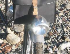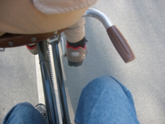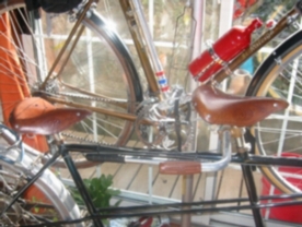 古くておしゃれな自転車のお話を しばらく僕はうかがいました。 やがて、川原風で体が冷えた僕らは 来た道を戻ることに。 なんと! 帰りの下り坂は 山下が前を運転させてもらいました!