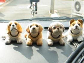 というわけで、 佐藤さんは快くイグニッションキーを まわしてくださいました。 道路へと滑り出すハイウェイスター。 ダッシュボードのペットたちが、 いっせいにうなずきはじめます。 (↑動画を見るには画像をクリック!)