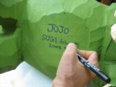 じゃ、ジョジョをここにのせて、撮りますよー。