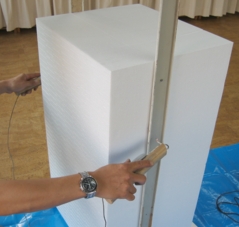 (ニクロム線をスチロールにあてる)