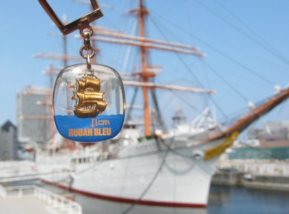 というわけで、帆船を背景にした