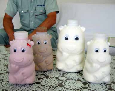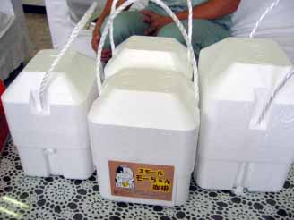 両手に牛乳ケースを抱えてらっしゃいます。 |