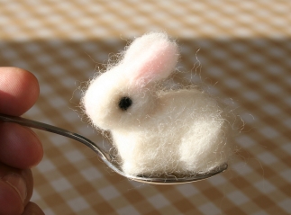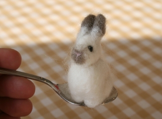 耳のたれたうさぎが、スプーンのうえに‥‥。