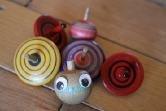 そうですね、気が向いたら。 やっぱり子どもたちは遊ぶのがお仕事ですから。 お教室にはもちろん、 なつかしいオモチャがたくさんありました。 僕はケン玉に挑戦してみたりして‥‥。