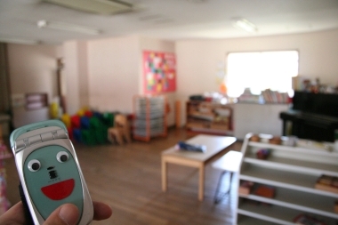 番外編 春の動眼まつり。 第1回と第18回でご紹介しました 動眼(どうがん)、 舞台を「幼稚園」にしましての再々登場です。 今回は「おじさん」に お話をうかがうスタイルではありませんので、 番外編という形でお送りさせていただきます。 いよいよ本格的な春ということで、 「春の動眼まつり」と銘打ち、うららかに。 ただし、まつりといっても参加したのは僕1名。 男ひとりの、静かに熱いまつりでございます。 43歳、妻子持ち、山下哲は、 動眼をじゃらんと握りしめ 武蔵野市の「平安幼稚園」に お邪魔したのでありました。 保育士の先生が案内してくださったのは、 こんなお教室でした。