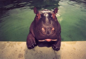 はははは、カバが舌を出して。 |