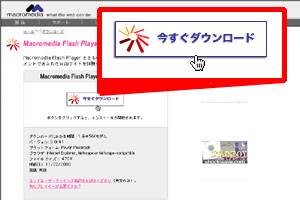 まずは、FLASHのある、 マクロメディのWEBサイトにいきます。 アドレスは↓ http://www.macromedia.com/jp/downloads/