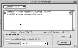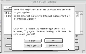 上のアイコンをダブルクリックするとインストールが 始まります。 まず、FLASHをどのブラウザーにダウンロードするかを 決定します。 お使いのブラウザーが、 NetscapeNavigatorなのか、IEなのか、 ボタンをクリックします。 そして[Install]開始!