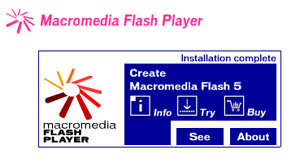 ちゃんとインストールできたかためしてみましょう。 http://www.macromedia.com/software/flash/about にアクセスして、左の図が動いていれば大成功。