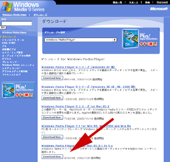 まずは、ウインドウズメディアプレーヤーのある、 マイクロソフトのWEBサイトにいきます。 アドレスは↓ http://www.asia.microsoft.com/ japan/windows/ windowsmedia/download/default.asp 5番目の、Windows Media Player 7.1 for Mac OS 8.1 to 9.xを ダウンロードします。 ※残念ですが、OSの8.1よりも前のものを お使いの方は、ダウンロードができません。
