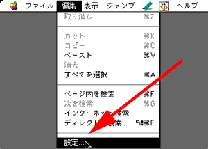 まずは、ブラウザーをダブルクリックして、 立ち上げましょう。 インターネット・エクスプローラーの場合は、 メニューバーの『編集』から 「初期設定」を選びます。 ネットスケープ・ナビゲーターの場合は、 『編集』から「設定...」を選びます。 そうすると、設定をいろいろするための ウインドウが出てきます。