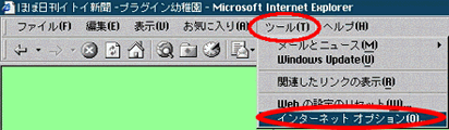 インターネット・エクスプローラーの場合は メニューバーの『ツール』または『表示』から 「インターネットオプション」 を選びます。