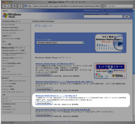 こちらから、Windows Media Player 9 シリーズ for Mac OS X を ダウンロードしてください。 ![]() ![]()