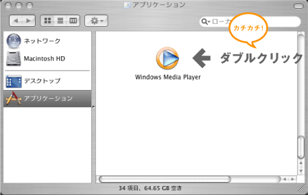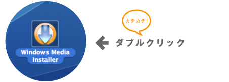 画面に現れた「Windows Media Installer」を ダブルクリックして、 WindowsMediaPlayerを お使いのパソコンにインストールします。 さきほどのダウンロードでデスクトップに保存したファイルを ダブルクリックします。 あとは、画面の指示にそって進んでください。 ![]()
