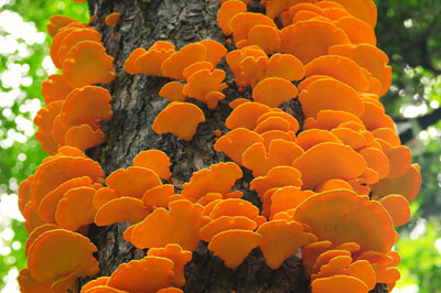 夏の盛りに、山や森を歩いていて、立木や倒木に、