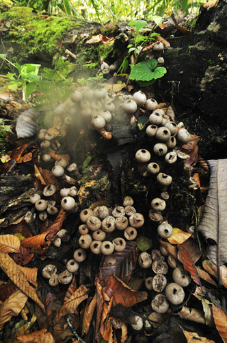 ぶわ〜っとホコリのような胞子を吹き出すという、