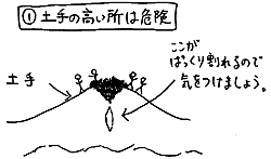 危険がないように土手の高い方へ