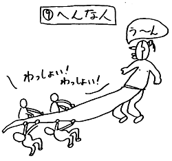 | しみじみとした趣に満ちた言葉の国日本。 そんな国のいとおもしろき言の葉を一つ一つ採取し、 深く味わい尽くしていく。 それがこの項の主な趣向である。 其の百弐拾八・・・春のあれこれ 桜の季節も終わり、春もラストスパート。 早春には爽やかな色艶がありますが、 時には遅い春を愛でるのも一興。 晩春の行事や旬、生き物などを、 幕の内的にご堪能ください。 (1)性くらべ ![]() うら若き乙女が自分の性キャリアを柱にしるし、 毎年この時期に競い合います。 1回の性体験につき1センチ。 毎年柱の傷は上昇していきますが、 二十歳前に天井を突き抜けてしまうのは いかがなものかと思います。 男子はカリくらべをしますが、割愛します。 (2)パイン ![]() 女性のおっぱいとワインをブレンドした大人の飲み物。 おっぱいはある程度成熟したものがビンテージですが、 あまりに熟しすぎると評価が分かれます。 (3)たまひかり ![]() 春に収穫するコシヒカリ。 米粒の下部が金玉のような形状になっています。 まれに光ることも。 銀シャリとはいわずに、 敬意を込めて金シャリと呼ばれます。 (4)敬膣 ![]() ほとんどの人がその道を行き来し、 この世に生を受けました。 荘厳な部位に一礼し、頭を上下動させるのが作法です。 (5)傷心保険 ![]() 春は旅立ちの季節。 新しい場所で、新しい彼氏、彼女ができて 別れてしまうカップルも多いものです。 使わずにすめばそれに越したことはない保険なのですが。 (6)まんげ鏡 ![]() 黄金の筒の中に正三角形の鏡をセットし、 中に女性の下の毛と宝石を入れます。 金髪ならなお、その輝きはまばゆいほど。 (7)ゴクブト虫 ![]() 夏の虫の王様がカブト虫なら、 春の虫の王様はゴクブト虫です。 ハリガタ虫がライバルで、 クヌギの樹液を取り合って角を大きくして戦います。 (8)こうがんレフカメラ ![]() すべてのものを睾丸の目線で撮影。 男ならブラブラ撮ろう! (9)へんな人 ![]() 自分の長〜〜いフンドシで、 いろいろなものと綱引きしています。 子供たち、犬、道路標識‥‥。 その勝負に何の意味があるのか誰もわかりません。 (10)子宮式 ![]() 5月に行われる安産祈願。 顔が子宮型をしているヤギが走り回ります。 よくよく見ると、 あまり春とは関係ないものも多いようです。 春眠暁を覚えずといわれるように、 まだ脳が眠りから覚めていないのですね。 それもまた春。 |