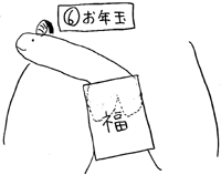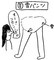 | しみじみとした趣に満ちた言葉の国日本。 そんな国のいとおもしろき 言の葉を一つ一つ採取し、 深く味わい尽くしていく。 それがこの項の主な趣向である。 其の百伍拾伍・・・正月といえば あけましておめでとうございます。 今年もよろしくお願い申し上げます。 さて、行事大国日本のお正月は、 荘厳な催しが目白押し。 無病息災、家内安全、商売繁盛を願い、 ぜひご参加いただければと思います。 (1)交響曲第69番 ![]() 第9が年末の風物詩なら、年始の交響曲はこの第69です。 合唱の部分は、男女が交響曲の番号と同じ体勢をとるため、 歌はあまり聴こえてきません。 (2)ちち舞 ![]() 突然、玄関に乳リンの大きなおばあさんが闖入。 獅子の形相で乳を舞わせます。 五穀豊穣や悪魔祓いを目的としますが、 あまりの迫力に、 悪魔に取り憑かれた状態になる子どもたちが続出。 (3)数の子天井 桐の箱の天井部分に、最高級の数の子が飾られています。 手を使わずに舌を上手に使い、味わう至福。 類似の食べ物にきんちゃくがあります。 (4)除イヤの鐘 ただの鐘かと思いきや、 撞木が当たる部分に穴が開いていて、 鐘をつこうとすると突き抜けます。 つく人、見る人の心の中に美しき音は響きますが、 次第に興奮してくる輩もいます。 (5)ちんコマ回し 自分のぽこちんと同じ太さ、長さのコマを回します。 小さな軸の人は、大きな軸の人のコマをはじきとばして、 何とか自尊心を保とうとします。 (6)お年玉(落とし玉) 頭の後ろに手をやり、ヒンズースクワット。 地面に自分の玉が入るように、 大きめのお年玉袋を立てて置いておきます。 うまく玉が入ったら、そのまま意中の女性のもとへ。 「はい、お年玉」と言って、もらってくれたら成功。 いらない場合は金蹴りをくらい、 落とし玉にされてしまうリスクがあります。 (7)動物愛護マフラー詣 動物の毛でマフラーなんてもっての他。 志を同じくする者たちが、 自分の陰毛でつくったマフラーをして、 動物神社にお参りに出かけます。 自分の毛でつくったコートを着ている人もいますよ。 (8)雪パンツ 雪を南の島に運びます。 全裸になって雪のパンツを履き、 颯爽と美女の集うビーチへ。 雪解け後には、季節はずれのつくしんぼが。 世界に類を見ない、日本ならではの新年のお楽しみ。 お正月って、ほんとにいいものですね。 これからも、古より伝承されてきた日本の心を、 大切にしようではありませんか。 |