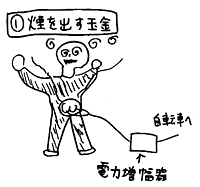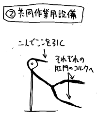 お尻の辺りに穴が空き、そこから太い紐が出ている。 |