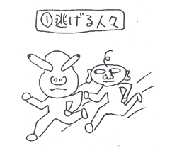 怖がりな弟子は、目をつぶりうずくまってしまった。