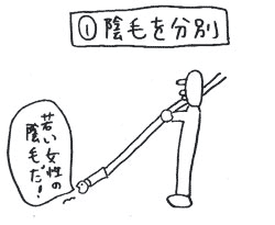 畳にめり込んだ陰毛を掃き出そうとするが、
