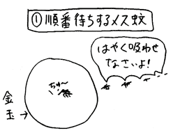メスの蚊が大挙襲来し、順番待ちをしながら、