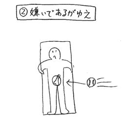 「へへっ、また外しやがったな。へなちょこ野郎」