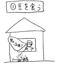 各家が豆まきをしている最中、