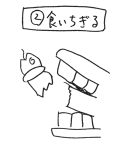 うわっ、食いちぎった〜〜〜」