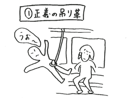 「あれ?吊り革が下りてきた」