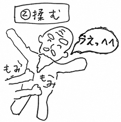 揉みはこそばゆいのう」