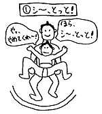 よく幼児がお母さんに後ろから太ももを抱えられて、