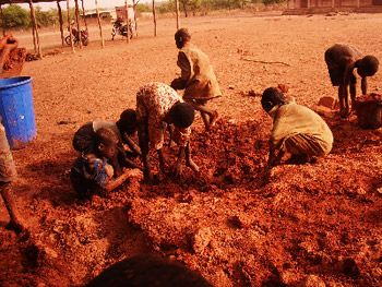 彼は子ども等が運ぶ練った赤土をちぎっては投げ