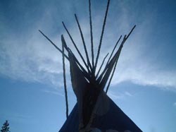 伝統的な円錐型のテントに通された。