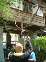 | 南洋通信 その3 鉄はオレの身体をオヴァーヒートさせる物質だ。 昨夜は作る<風のイメージ>が頭蓋内に蔓延して ほとんど眠らなかった。 朝、八時ジミィー邸。 木の廃材で階段から部屋そして次のスペースまで階段と、 bラセンを描いて上昇するジミィー建築。 温度差で発生した風が吹き抜けている。 ヤツは熱帯の風を産む詩人なのだろう。 ![]() さっそく昨日やっと集めたチャリンコの車輪から タイヤを外してリムだけにした。 スポークに四枚から八枚の羽根を着けるのだ。 速度を記憶したスクラップを、風を捉える回転装置にして、 彼の建築とコラボレーシ ョンするのだ。 小便する間もなく、オレの身体の全ての毛穴から たちまち南洋の水分を盛大に噴出していた。 摂っては噴出し滴り落ちる水の循環装置。 ところが、どうしたんだ溶接機、 しっかりしろよ溶断バーナー。 パワーが出ないのだ。 しかも今日は日曜日。 昨日購入した工具屋は休みときた。 今日一日しかオレにはジカンが無いんだ。 オレのゲージツは、 どうして厄介な方向へ向かってしまうのだろう。 サハラ砂漠でもそうだった。 モンゴル草原でもそうだった。 過酷な使い方するオレのせいだけではなく、 いい加減な代物だったのだ。 哀しい時ほど手を動かしていると、 新しいアイデアが訪れて来るのがオレの常である。 何としても、スクラップを<風の詩>に再生するのだ。 マレー人の老職人、バングラデッシュからの出稼ぎ職人 ふたりがオレの手元である。 何とか全ての道具を完璧にして、 ゲージツを開始したのは昼過ぎになった。 哀しいほどの原始的な自分の身体を使って、 手元たちにオレの頭蓋内のパッションを伝え 失ったジカンを埋めた。 言葉も習慣も違うヒト等を巻き込んで、 南洋の鉄の叙事詩が遅々として出来ていく。 コトバのパーツはほとんど出来上がったときは すでに、蝙蝠が飛び交う夕方、 辺りは真っ暗闇になっていた。 風の樹に、それらを取り付けるにはあまりに危険だった。 ディレクターがクワラルンプールへの出発予定を 遅らせてくれ、明日朝七時から開始して 完成させることにした。 その後、五時間かけて車で移動だ。 時々現れてはオレの仕事を眺め、 「イイ、あんたの考えが伝わってくるよ」と言い残し しばらく姿を見せなかったジミィーが嬉しそうに戻ってきた。 「直径二メートルの船のスクリューを見つけた、 明日届くんだよ」 「どうするんだ」 「あんたの風の樹の根っこの一階の部分に、取り付けるんだ」 「そうか水のメモリーを持った回転だナ」 「そうだ、それが上空のKUMAの風の回転に 繋がっていくんだよ」 「いいコラボレーションになったナ、アリガトウ」 ゲージツ家と建築家は握手した。 賑わう屋台の群れでラーメンを喰い、 部屋に戻って溶接のヒカリでやられた眼を氷で冷やした。 明日朝までに俄か失明を回復させなくちゃなあ。 二時間ほど眠ったがドアボーイが 「ドアが半開きになっている」とオレを起こした。 まだ真夜中一時だった。 『蔓草のコクピット』 (つるくさのこくぴっと) 篠原勝之著 文芸春秋刊 定価 本体1619円+税 ISBN4-16-320130-0 クマさんの書き下ろし小説集です。 表題作「蔓草のコクピット」ほか 「セントー的ヨクジョー絵画」 「トタンの又三郎」など8編収録。 カバー絵は、クマさん画の 状況劇場ポスターの原画「唐十郎版・風の又三郎」です。 |