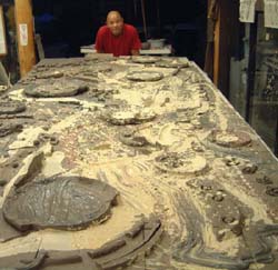 土500kgの山ごもり 雨が続いている。<増穂登り窯>にて陶板製作中だ。 五〇〇kgの粘土で 二メートル×四メートルの大陶板である。 富士山は見えないが、この雨は次々に沸き起こる ゲージツ・ショードーに集中するに は、 土の乾燥を遅らせてくれる絶好の水分だ。 朝九時から開始して昼メシを抜きのオレは、 半日ぶっ続けである。 窯主の太田氏が手配してくれた若い男女の四人の手元も、 オレの速度に合わせてよく動いてくれてアリガタイ。 <登り窯>も真っ暗になり今日のシゴトはここまで。 さすがに、背中や腰が少し痛む。 マネージャーから、「Sさんが亡くなった」との連絡。 彼は、今年春、青山画廊で開催した オレの陶板展をプロデュースしてくれた。 オレより数歳若かったが、 ひっそり独りで死んだ彼が発見されたのは 二日後だったという。 「寂しさに救済なぞあるものか、バカタレめ!」 何度か言ったこともあったんだが、 呑むと「寂しい…」が口癖だった。 集団でたむろっていれば<寂しい>が 癒されると思っている楽天的なところもあった なぁ。 一ヶ月ちかい漂流中に、 生きている朝を迎えスイカでも流れて来ないかと 思っているうちに、 生き抜いてしまった漁師がいたかと思うと、 住宅ローンで苦しんだ兄弟が 懐中電灯で暮らしたはてに飢死した。 つい最近まで鳴き叫んでいた蝉は何処で死んだのか、 今は間もなく終りを迎える秋の虫が全盛である。 五〇〇kgの土をゲージツした日、 いつか終わるこの世のジカンをS氏は迎えたんだなぁ、 合掌。 帯同している尺八で<嘘鈴>を吹いてやった。 オレの山ごもりはまだまだ続く。 『蔓草のコクピット』 (つるくさのこくぴっと) 篠原勝之著 文芸春秋刊 定価 本体1619円+税 ISBN4-16-320130-0 クマさんの書き下ろし小説集です。 表題作「蔓草のコクピット」ほか 「セントー的ヨクジョー絵画」 「トタンの又三郎」など8編収録。 カバー絵は、クマさん画の 状況劇場ポスターの原画「唐十郎版・風の又三郎」です。 |