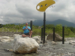 雨があがった大武川を、握り飯と尺八を腰に散策。