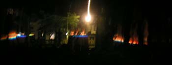 花やしきの小さな模型にオレが創った大きな虹が掛かり、