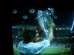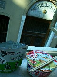 | ヴェネチア浮遊 その12 走るアジアの雨期、ACミラン、 カップラーメンとエスプレッソ。 ミラノ中央駅からヴェネチアまで特急電車で三時間。 乗り込んで間もなくオレは汗を吹きだしはじめ、 車両の他の客もサウナ状態になった。 ボテーロの彫刻みたいな体型の車掌も汗を拭きながら、 配電盤をいじっている。 イタリアンの気配を漂わせるTSUCHYが 「ヒーターは季節的に早すぎるぞ」とせっつくのだが、 取り扱いガイドブックを見ながら焦る車掌が スイッチをパチパチやるが、 走るアジアの雨期は治まらなかった。 イタリアのスキンヘッド親父達も 湯気をあげて抗議しはじめるが、どうにもならない。 諦めて田園風景を眺めながら睡魔にゆだねるオレは、 やっぱり湿気に強いアジアの体細胞なのか。 暫くして車掌が来て 「後ろのコンパートメントは クーラーも効いてるし 席も空いてますので、どーぞ」。 まだ二時間はあるので移るとやっぱり快適だった。 ヴェネチアに着くと今晩のサッカーの チャンピオン・リーグ決勝戦で持ちきりで、 しかもユベントスとミランというイタリア・チーム同士が 遙かマンチェスターで闘うビッグイヴェントらしい。 オレも部屋のテレビに 初めてスイッチを入れた八時四十五分、キックオフ。 近所の窓窓から上がる歓声では どうやらACミランのファンが多いようだ。 どっちでもよかったオレは絵の具で落書きしながら、 歓声のたびに見慣れてないテレビを観る程度だったが ミランの方が押し気味だった。 しかし<0−0>のまま延長も勝負つかず、 ゴールキックの蹴り合いでやっとACミランが勝った。 遅い時間、窓窓から 「ブラボー! ミラン!」 の大合唱だ。クールなオレは残り少ないゼニ勘定。 朝になればそこら中で親父どもが 赤と黒のチームカラーを着て、 昨日の試合についての興奮した立ち話だし、 小学生の男の子も女の子もミランを讃える歌を合唱して 石畳を往く。 ファシズムの台頭かと思った。 <蹴る>という行為には憎しみが籠もっていて、 サッカーは<蹴る>コトを形にした闘いなのだろう。 世界のあっちこっちの貧しく狭い路地で サッカーボールを蹴り合う少年達が スーパースターになり ゴールに球を蹴りこんで観衆を湧かせ、 莫大なゼニを稼ぐのだ。 ![]() 闘うイメージを創ることが出来ない 頭蓋を乗っけただけの足腰を、 いくら鍛えてもせいぜいスポーツどまりだろう。 もう何日になるのか、 <カップラーメン>と<非常用保存食の白飯>の朝食。 お湯さえあれば立派なラーメンライスで、 昼か夜はイタリアン料理を喰うからこれで十分である。 フランチェスコ教会に向かう。 ロベルト司教が 「一昨日も昨日も、美しい虹が出てましたよ」 とオレにエスプレッソを入れてくれた。 炎天のもと<La Luce Circolante>に囲まれた フランチェスコ像の下で、 交尾するトカゲの痙攣する背中が緑色に輝いていた。