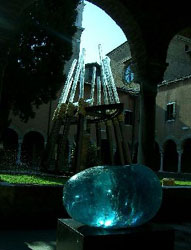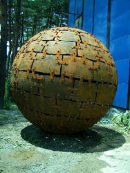| ヴェネチア浮遊 その14 山梨へ帰る。再びヴェネチアへ。 ![]() 生温い闇を毛糸に編みこんでいたゴミ箱から出て、 十七歳から三十代まで通った暗闇は映画館だった。 場末のフィルムはよく切れてヒカリの虚構世界が終わり 一瞬強いヒカリを反射するだけの しらけたスクリーンだけになった。 場内が暗くなったのは案外、 映画好きの映写技師がわざと悪戯で造ったかもしれない 暗黒世界のなかでオレの頭蓋が膨らんだ。 売るほどあった売れないジカンを、 自分の輪郭すら曖昧にしてしまう映画館で眠るオレは、 ただの闇好きだった。 ヴェネチア映画祭があるリド島のメインストリートで 同時開催する<OPEN2003>の今年のテーマは <シネマとアート>だという。 ボルトアップで創った直径三メートルの鋼板の球体、 <まだ未熟すぎるピリオド>は 闇の容れ物だからテーマに添ってはいるわい。 西洋の硝子は薄く薄く天上のヒカリを 地上に透過するための歴史だったのだろう。 極東で創ってきたオレの分厚い凹凸のある硝子 La Luce Circoranteは、ヴェネチアの強いヒカリを宿し、 余剰のヒカリは虹になり回廊の闇溜まりを移動している。 天動説でなく地動説でもなく、光動説だ。 サンマルコの停留所から水上バス。 ヴェネチア空港を出たオレは、 アズサで山梨FACTORYに向かっていた。 出発前<まだ幼すぎるピリオド>に施した 酸化具合が気になっていたのだ。 留守中に雨が多かったらしく、 螺旋に切り刻まれた球体の裂け目から 溢れて拡がる闇の底に、 たっぷりした天水が溜まっていた。 ![]() ![]() ところが表面の錆び具合が気に入らない。 酸化膜が浮き上がっているのだ。 明るくなる朝六時を待って、 ワイヤーブラシで球体の広い表面積を刮げ落とし 密着した新しい錆を着けることにした。 造船所に引き上げられ遠洋漁業から戻った船底を ツリ鑿で堅い殻を刮ぎ落とすシゴト。 赤い汁を出して壊れた海のメモリー。 ヒカリの影が闇なのではなく ヒカリを集積して闇を創り出すのだ。 またヴェネチア個展のオープニングへ向かう。 『蔓草のコクピット』 (つるくさのこくぴっと) 篠原勝之著 文芸春秋刊 定価 本体1619円+税 ISBN4-16-320130-0 クマさんの書き下ろし小説集です。 表題作「蔓草のコクピット」ほか 「セントー的ヨクジョー絵画」 「トタンの又三郎」など8編収録。 カバー絵は、クマさん画の 状況劇場ポスターの原画「唐十郎版・風の又三郎」です。 |