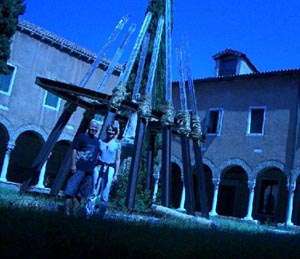 | 天気晴朗なれど異国の浪高し 車の乗り入れが一切ないヴェネチア本島と違って、 タクシーやバス、トラックなぞが走り回るリド島は、 朝からエンジンの文明音と浪音が混じってはじまる。 海岸線に沿ってナマコの腸のような メインストリートには、 金持ちの高級ホテルや別荘が立ち並び、 オレの安アパートはそのゾーンから少し離れている。 湿気はすでになく、 そっちこっちの夾竹桃の赤い花に真夏の日差しだ。 それにしても昨夜のディナーで喰ったウナギの、 パリパリにグリルして北京ダックのようになった 皮に張り付いていた脂身に、 質のいいバルサミコをどぶどぶ掛けた 一口二口は美味かった。 しかし一息ついた三口目は オレの口のなかをポマード状の瓶にしてしまった。 荒々しいこんな喰い方も好きなのだが、凄すぎた。 高知民らとのエン会でオレが必ず特注する <ウツボのたたき>のナイーブな味を思い浮かべ、 三口目を飲み下した。 さすがに堪らずあとは残して 頭蓋内を浄化しながらワインで口を清め、 何喰わぬ顔でゲージツの話をつづけていた。 PAOLOが恩師であったレスタニが 遺していったという 最高級のキューバ葉巻を取り出してきた。 飲み物を冷えたグラッパにした。 風雅な繊細とやらを欠落して産まれてきたオレは、 この煙を優雅な野生の味に変換した ウナギの脂を愛おしみながら、 頭蓋内はアドレア海から 夢のキューバまで駆け回っていた。 朝のヒカリに充ちた枕元に薄いカーテンが、 海からの空気をなぞっている。 強い酒は強く呑み、 野生の味は野生に喰って迎えた朝は、 すでに<痛風>の欠片も残っていないじゃないか。 オレが来る何日か前に、 小説家の伊集院静氏がフランスから わざわざフランチェスコ教会を訪ねて <La Ruce Circolante>を 観てくれたらしいが、あまりに膨大な規模と 時間や費用に呆れたという。 『これが往けるところまで往き、 チカラ尽きたとしても惜しくはない オレのゲージツなんだよ、ジュッちゃん‥‥』 ![]() 訪ねてくれた数少ない友人に 逢えなかったのは残念だったが、 またどっかの巷で彼とは必ずすれ違うだろう。 水上バスで久しぶりにサンフランチェスコ教会に行く。 何が原因なんだかまだ税関から解放されない コンテナーが届くのは オープニング当日になるかもしれないとの連絡だ。 『木っ端役人どもめが!』 なぞと叫んでも仕方がない。 着いたら全力でボルトアップして 間に合わすしかないから、 大量のヒカリのなかで 暮れのパリでやるコラボレーションのことや、 来年のロンドンに想いを馳せていた。 個展会場の案内嬢をしてくれているのは 横浜国大留学生のCINZIAさんだ。 赤テント<状況劇場>の研究をしているという 碧眼美人のインテリ娘である。 毎日刻々と移りゆくオレのヒカリを眺めるのは 幸せなことだと、 しっかりした日本語で嬉しいことを言ってくれるわい。 『蔓草のコクピット』 (つるくさのこくぴっと) 篠原勝之著 文芸春秋刊 定価 本体1619円+税 ISBN4-16-320130-0 クマさんの書き下ろし小説集です。 表題作「蔓草のコクピット」ほか 「セントー的ヨクジョー絵画」 「トタンの又三郎」など8編収録。 カバー絵は、クマさん画の 状況劇場ポスターの原画「唐十郎版・風の又三郎」です。 |