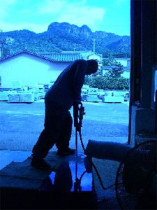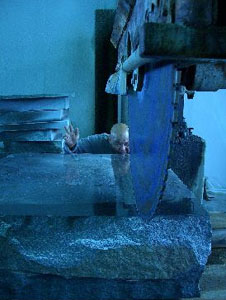 | お接待 高価な墓石の庵治石をまだ切り出している 石切場がある五険山の稜線は、来るたびに変化している。 もう何度も石のゲージツに通って来る 牟礼の<西山石材>は、 屋島を望む石の山・五険山のふもと牟礼町にあって、 すぐ上は四国巡礼八十八ヶ所の八十五番札所、 八栗寺<やくりじ>の足元だ。 遍路道を沿いの家では、札所の巡礼者に対して、 一杯のお茶を出したり、宿泊の部屋を提供したりする <お接待>という習わしがムカシからあったという。 ゲージツ浮遊者のオレに、 朝メシと寝場所を<お接待>してくれているのは、 西山石材の倅ヨシの家庭だ。 まだ小さな赤ん坊が、ひっきりなしに自分の玩具を <お接待>してくれるたび愛想笑いを返す面倒をのぞけば、 作業場も近いし充分な環境である。 シンプルな朝メシをいただき、 家の前の畑わきは細いムカシの遍路道で 数分登れば作業場である。 ![]() ![]() 掘削機で穿った孔に、 矢という鉄の楔をハンマーで打ち込み石を割る。 石工の親方から教わり楔を差し、打ち込む。 甲高い打撃音がだんだん低くなり、ハンマーを握る掌に、 何百、何千年、何万年の地下で眠っていたジカンが 裂けていく粘りが伝わってくる。 サディステックな汗が浮く。 黒く鋭い亀裂がオレの引いた線に沿って奔り、 もうひと振りで分断する予感だ。ビッツ…ズンッ。 分厚い断面が育成以来はじめて陽のヒカリを浴びたのだ。 もう一面の切断線に楔位置を記し、 削岩機が暴れないよう切っ先を足で押さえ、 エンジンを始動する。 ビルを解体したり道路工事で アスファルトを剥がしたりしていた ジダイに使っていた重い掘削機と同じである。 身体が覚えている。 無駄なチカラはかけずに、 削岩機の重さをコントロールしていると、 石の奥深くにまで穿っていくのだ。 「ヨシ昼にするか」「うどんでいいですか」 「讃岐はうどんしかないだろうが」 打ちたて、揚げたての熱々うどん玉をドンブリにあけ、 鶏卵を割り黄味だけを掛けたうえに 生醤油を垂らして喰う<ぶっかけ>が好きだ。 こういう美味いうどんを喰うには、 チェーン店ではなく民家に挟まった 間口の小さなうどん屋に限る。 注文から喰い終わりまで十分足らずの速度が 肉体労働のテンションが途切れなくてイイのだ。 明日からゲージツ家は高知に浮遊する。 『蔓草のコクピット』 (つるくさのこくぴっと) 篠原勝之著 文芸春秋刊 定価 本体1619円+税 ISBN4-16-320130-0 クマさんの書き下ろし小説集です。 表題作「蔓草のコクピット」ほか 「セントー的ヨクジョー絵画」 「トタンの又三郎」など8編収録。 カバー絵は、クマさん画の 状況劇場ポスターの原画「唐十郎版・風の又三郎」です。 |