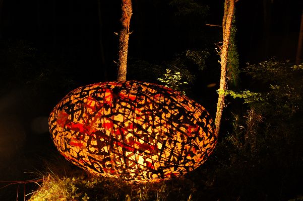 | ヒカリ繭浮上す FACTORYから出ることなく竹で無言の二週間、 <ヒカリ繭>をひたすら紡いできた。 これは八月奈良での灯華会に参加する <ヒカリ繭>のミニチュアである。 和紙を貼り込んで十四日、やっと仕上げた。 夜、釣友のカーペンが大きなワンボックスで迎えに来た。 完成した<ヒカリ繭>を 十五日記者発表のある恵比寿まで運送するためだ。 田植え準備を済ませた須田さんも駆けつけてきて祝杯だ。 「皆の衆、酒はいくらでもある。 酔っ払う前に撮影するぞ」 アカマツ林のなかへ<ヒカリ繭>を担ぎ込んだ。 七本のロウソクに火を点すと、 うっそうとした植物群のなかに 和紙を透かしてヒカリの繭が浮かび上がった。 ![]() ショーチューで乾杯しながら、いにしえの真夏の夜、 空や池の水につかの間浮遊する 巨大なヒカリの繭を夢想していた。 頭蓋内のその<ヒカリ繭>は、 短径三メートル長径五メートルになっていた。 奈良の真竹で作ったヒゴ二〇〇〇メートルは必要である。 オレも未だ見ぬ巨大な<ヒカリ繭>を 一夜で出現させるプロセスまでも組み立てていた。 『ヨシッ、いけるぞ』。 近くに住んでいる琵琶の元リュートという 中世の楽器を作っている山下暁彦氏が、 朝十一時から作っていたという角煮を入れた 圧力鍋を抱えてやってきた。 カーペンが持ってきた芋ジョーチューで 本格的なエン会である。 楽器作りの名人が、オレの尺八を納める箱を 黒檀で作ってくれることになった。 ありがてぇえ。 十五日昼過ぎ、FACTORYを出発代官山に向かった。 記者発表の会場になる庭園はビル街の谷底だ。 ロウソクが並べられた芝のうえに置いてみたが ビルからの明かりがノイジーだった。 「あの紅葉の木の上に上げる」 カーペンに言う。 関係者は狼藉者を呆れ顔で見守っている。 見えないヒカリを追うゲージツ家を もう誰も止められない。 オレとカーペンはなんとか 五メートルある樹の上に載せてしまった。 立体的になったヒカリに関係者の顔が明るくなった。 したいコトをせずにいると、 したくもないコトをやるのと同じくらい 苦痛なものである。 文春の森君が見にきた。 「道を歩いていると遠くからヒカリが見えましたよ」 夜空になって<ヒカリ繭>がますます明確に浮かび上がる。 雅楽の演奏に続いて宗次郎氏がオカリナを吹く。 音が谷間に木霊した。 奈良県産の食材で作った料理と酒粕のショーチューで ガーデンパーティーになった。 初対面の宗氏と歓談。 八月、奈良での再会、 オレの好きな元興寺の茶室で 酒を呑みながら 音の話を聴かせてもらう約束。 関係者が「実は…」言いにくそうにしている。 「誉めコトバならもういらないぞ」 「いえいえ、とんでもありません」 「じゃあ、なんだ」 「実は奈良の鹿は紙を食べるんです。ロウソクだって」 「あ、そういうコトか」 <ヒカリ繭>を喰ってしまうかもしれないと言うのだ。 二日続きの痛飲で酔っ払っていた。 「大丈夫だ、ちゃんと次のアイデアがあるんだ」 「安心しました。断られると思ってましたから」 「まだ言わないけど、もっとバージョンアップした モノになるから」 オレの頭蓋にはすでに次のヒカリを想っていた。 この夏は熱くなるわい。 そろそろ海に漂いたくなってきたわい。 ![]() |