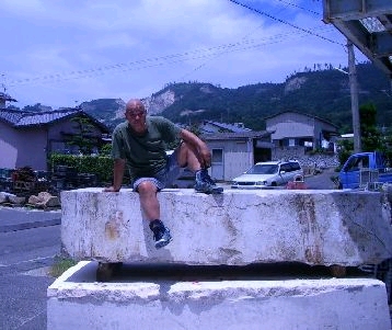 | 軽量から重量へ往ったり来たり <誰でもピカソ>収録の控え室。 隣に座ったゲストの妖怪漫画家・水木しげる老人の 強い視線を側頭部に感じていた。 ついに右下から 「それはハゲ?剃っているの?」 興味深げな声がした。 彼の左耳に肌色の小さな補聴器が埋め込んであった。 オレは少し大きめな声で 「両方です。毎朝剃髪して四〇年ほどになるけど、 そろそろ生えることを怠ける毛も ずいぶん増えてきました」 と答えた。 「それにしても眩しいねぇ」 水木サンは黒いサクランボウを 機械仕掛けのように頬張りながらも、 眼はスキンヘッドに止めたまま 「三割はもう妖怪だねぇ」 としみじみ言う。 ゲージツ家の生息形態は 妖怪にちかくなっていくのだろうと思っていたが、 妖怪達人からのアリガタイお墨付きだった。 剃髪なぞしなくて済む頃になれば、 オレも完全妖怪になれるのだろうか。 ![]() ![]() 青の夢殿から、香川の石屋に飛んだ。 すでに直径七〇センチの球体を削った紅い大理石 ロッソマグナボスキを置いてある西山石材に、 トラバーチン・フローレンスと トラバーチン・ヴェローナ一〇数トンが 届いたという知らせがあった。 もう梅雨入りしたはずの瀬戸内の石の町は風もなく、 空梅雨なのかぽやけたおてんとうさんの元で、 ベニヤ板を三メートル平方に敷きつめた。 猛烈な湿気にまみれて原寸大のデッサンをして 十五のパーツに切り抜き型をおこした。 色の違う巨大な石から パーツごとに切り出したカタマリを、 ヒカリのカタマリとを太い鉄のカスガイで 繋いでいくのである。 ![]() 総重量二十トン弱のオブジェを 夏、秋が過ぎる頃には仕上げ、 甲府まで運び中央病院に設置するのは 十二月の後半になるのだが、 石屋のかき入れ時になる彼岸や盆の時期を外しながら、 毎月牟礼に通っては石に立ち向かうことになる。 その間に、金比羅歌舞伎で有名な 重要文化財の芝居小屋<金丸座>のオブジェに 県産石の庵治石を使おうと思い、 分けてもらおうと以前から懇意にしている 石切場の大久保翁を訪ねた。 背筋をのばした翁の貌は 相変わらず松平藩家老直系の余裕の雰囲気を感じさせる。 庵治石は高級墓石らしいが、オレは墓には興味はない。 墓にならない部分を使うことにした。 ゼニが無いときは頭蓋と筋肉を使うのだ。 目眩をおこしそうな切り立った石切場の てっぺんに案内され一服した。 涼しい筈の景色に、余裕をかまして 愛用の尺八の稽古でもしようと思ったが、 固まったまま煙をはくオレの背中は 別の汗でびしょびしょで そんな余裕はすでになかった。 高知の山内家に仕えたウルシ職人の家系だった爺さんは、 十七歳で北海道に渡り屯田兵になり、 その孫であるオレは十七で家を出て 津軽海峡を渡ってゲージツ家になったのだが、 それにしても<身体だけが資本>は、 どうも家系らしいわい。 |