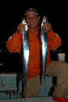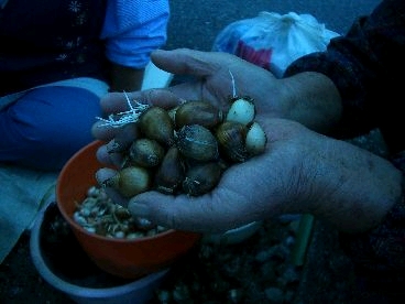 | 球根と太刀 温暖の海に発生しては襲来する台風は、 ことごとくニッポンに命中する。 植えた二本の無花果の苗木一本は枯れ ハナミズキの葉っぱも黄色くなり、 虫もカラスさえも鳴かない武川村も すっかり秋になっていた。 今年の春から牟礼に通って制作をはじめた 中央病院の巨大オブジェも、着々と進んで 暮れの設置にむけて仕上げの段階になった。 しかし年に一度の祭りの準備に入った石の町牟礼は、 石工のヨシさえ浮き足立ってシゴトにならない。 祭りはその土地のヒトにとっては、 ゲージツと同量のエネルギーだろうから、 浮遊人のオレは一旦、山梨に戻ることにしたのだった。 ![]() FACTORYに転がっているシナ合板の端材に、 頭蓋内を彫刻刀で刻み込みはじめた。 しずかな空気の中にサクサクと木を刻む音が心地いい。 筆で直接紙に描く絵と違って、 彫刻刀を絵筆にして木に刻みこみ、 紙に移し取るという古臭いメディアのような 木版画なのだが、木を刻み込んでいく刃先の感触は 自分の指先が拡張していくようだった。 銅版画や他の版画のようにゼニがかからないのが何よりだ。 鉄といい、硝子といい、石といい、 ただひたすら肉体と物質とのプリミッティブな抗いが、 オレの生存理由にはぴったしくるのだろう。 彫刻刀と木との摩擦係数を 指先がインプットしている段階なのだが、 硝子や石を削るためにオレが工夫した機器や いろいろな道具さえも、 やがて版木を刻み込む速度をもった刀になるはずだ。 四畳半大、十畳大の木版画だっていけるだろう。 NHKの釣り番組のロケで 西伊豆半島へカワハギ釣りに出掛けた。 カワハギ釣りは攻撃的な忙しい釣りである。 ハイビジョンでの放映日は十一月二十三日。 釣り具メーカーの提灯番組と違って、 面白い釣り番組になったと思う。 終了後、ロケ隊と別れて隣の小さな漁港へ向かったが、 相次ぐ台風で伊豆半島のあっちこちが寸断され、 普段なら二、三十分の距離を大回りして二時間かかった。 入り江の正面に盛大な富士山が シルエットになっている小屋の前に 座り込んだ老婆がひとり、 植木鉢をいじっている静かな漁村だった。 「まだ戻ってないだよ」 甲州弁に似た背中越しの言葉だ。 目当ての船は昼間の釣り客を乗せて まだ戻ってないらしい。 老婆は鉢を並べて球根を選別していた。 太刀魚の夜釣りまで船宿の二階にあがって 昼寝をしていた。 ロケの疲れもあって毛布の暖かさに同化していった。 「オレにもひとつふたつ分けてくれよ」 「そこのを持ってけ」 「野水仙なんだろうな」 「分かんねぇだ」 老婆たちの賑やかなおしゃべりで眼を覚ます。 「野水仙をくりょう」 「だから植えてみなきゃオレにも分ねぇだよ」 投げやりな会話に聞こえるのは海コトバの特徴だが、 山国の甲州弁に似て喧嘩しているわけではない。 二階から見下ろすと、 さっきと同じ格好で座ったままの地面色した老婆の脇で、 苔色のセーターの老婆が張り付いて 球根の根をゴツイ掌で整えている。 春になれば芽が出て何の花だか分かるから、 とにかく植えてみろと言う地面婆ァは、 やたらと花を咲かせるのが好きらしいが、 どの球根がどの花を咲かせたのかは忘れてしまうのだ。 苔婆ァは、野水仙だけが欲しいと譲らない。 ![]() たっぷりとした夕暮れに富士山が溶け込む頃、 球根婆ァのまわりにどこからともなく 老婆ァたちが数人湧いてきた。 野水仙を植える老婆等の行いは、 花を愛でてるというより、 生命の小さなカタマリを これから迎える冬の季節の前に温かい土に包んで、 己の再生物語を願う信仰にちかいのかもしれない。 「そろそろ行くけぇ」 船長が叫んでいた。 「今、行くから」 身支度して船に乗り込んだが、夜釣りにはもう肌寒い。 台風23号はこっちに向かっているらしいが まだ静かな魚場に着くと、 職漁師の船がすでにライトを灯し 数十艘、錨を降ろして操業していた。 短冊に切った冷凍サバが餌だ。 初めてのい太刀魚釣りを船長に教わるのだが、 漁師コトバはなかなか解読困難だったが、 それでもコツがだんだん飲み込めてきた。 リールを秒速十センチほどで巻いていると、 わずかな重みを感じる。 鋭い歯で短冊サバの端を咥えた太刀魚が ぶら下がっているのだろう。 分かり易い喰いの時なら この後すぐにガツガツッと来るらしいのだが、 今宵はここからが肝心だった。 短冊が千切れてしまわないように、 鉤まで喰わせるまで気長なやり取りが微妙で面白い。 一分以上かかって、リールを止めたり 秒速五センチで巻いて喰いを促したりしながら ガツッカツッガツッと来る鉤まで喰わせるのである。 魚体をアルミホイルで覆って 安っぽく光る模擬刀が暗い海から向かってきた。 船上に上がっても刀身をくねらせてオレを狙う。 太刀魚とはよく言ったものだ。 ゲージツ家は見えない生命とのやり取りに 夢中になって三時間ほど楽しんだ。 二十本の幅広の刀狩りだった。 ![]() 台風23号が九州に近づいていた。 祭りも終わっ