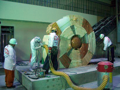 目蓋を削る![]() ![]() 石切場で積み込む前に地面に並べてみた石の集積が、 六〇〇kmを運ばれてガラーンとした まだ何もない中央病院の工事現場に着いた。 石工のヨシ兄弟と山梨の若い鳶の衆とで、 設置作業が順調にすすんだ。 一個づつ積み上げて二日目には、 十三トンの<SWEET ENERGY>が立ち上がる。 彼らが巨大な構築物にアンカーボルトを打ち込むあいだ、 細かい仕上げの手順を考えていたオレの頭蓋空間に 有機的なトラバーチンのカタマリが増殖しはじめた。 「仕上げ作業は年明け早々になるんだけど、 どうしてもあと一トンばかりのカタマリを 追加したくなった。 四国の石切場に戻って創ってくるわい」 往き来するうつむき加減の人等に、 ヒカリを宿したSWEET・ENERGYを放つのは 三月からである。 ジカンはまだある。 「心ゆくまでやってください。 なんでもフォローしますから」 玉村所長は有り難い味方である。 パーツが立ち上がっていく 底冷えするエキサイティングな工事現場では、 膝や筋肉の痛みも忘れていた。 しかし、一年間続いた三次元を刻むという 石とのバトルを一段落させ、 暮れになって大きな版画のプレス機を購入したのだった。 残すゼニなぞはないが、 宵越の体力は残さないのだ。 オレの生きて逝くスタイルがゲージツなのである。 年の瀬にきてまた厄介な道を選んでしまったのだった。 ヨシ兄弟の車でFACTORYに落としてもらい 「またすぐにお邪魔して創ることになっちまったけど、 イイ年をな・・・」。 彼らは六時間かけて四国に帰っていった。 また独りに戻って、ガラスのカタマリを コンプレッサーで削岩していた。 ゴーグルをはめるのも忘れて、 自分で工夫した削岩道具の切れ味を 衝動的に試してみたくなったのだ。 ガラスの破片が飛んで左の瞼を襲った。 目玉のわずか二センチ上だった。 自分で応急処置をして、 今度は版画部屋の模様替えをはじめていた。 『チキショー! 痛ぇじゃないか』 やっぱり少しくたびれていた。 三×六判の大きなコンパネの版木を敷いて、 木のぬくもりの上に横になる。 木に刻みつけた版にインクを載せ紙に転写する版画には、 紙に直接尖らせた鉛で闇を塗り重ねていた頃とは違う 何かあるような気がする。 三次元へ四次元へと彫り込んでいくのである。 また体力なぞを消費しながら エキサイトしていくのだろうなぁ。 防寒着を着たまま眠くなっていた。 オレのゲージツにシーズンオフはないから、 クリスマスも正月もない。 いつからかオレは日付なぞというモノを 必要としなくなっていたのだ。 『そうだ、海に往こう』 これとて早朝から昼まで釣り、 午後からまた船に乗り込んでは釣り、 船宿で翌日の仕掛けを作って眠らないを 三ッ日間続けるの荒行のようなオレの釣行である。 身体にイイわけはない。 「なにが哀しくてそんな無茶をするのか」 と、釣り仲間も呆れて一人減り、 二人去りでついに誰もつき合ってくれなくなった。 ボクシングの後のようになっていた左目の瞼を、 ハンチングを目深に隠してアズサに乗り込んだ。 「どうかしたのですか」 顔見知りの車掌がニヤリとした。 「隕石が落ちてきてよ」 と馬鹿な返事をしたものの、 彼には狼藉者にしか見えなかったのだろう。 確かにあのとき目の前が光った。 つかの間のジカンにも、独眼でオレは釣行する。 きっと海に漂うのも ゲージツ・ジカンに似た魔力があるのだ。 みなさんにおかれても、イイ年を・・・。 ![]() |