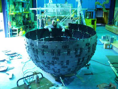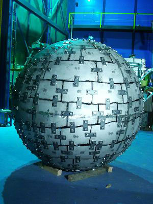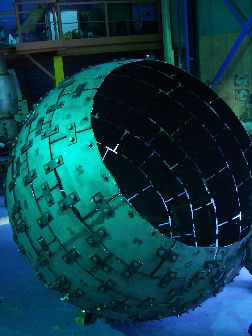 | 百十四枚の鉄片 江戸川の冷たい吹きッさらしの 小さな鉄工場での制作作業は、 小さな百十四枚の鉄のパーツを造ることだった。 ニューヨーク、<MIKE WEISSギャラリー>へ 運び込むオブジェのひとつである球体である。 久々に鉄とのやり取りで仕上げたパーツを、 武川FACTORYへ場所を移した。 七〇〇本のボルトナットの一本ずつを丁寧に締めながら、 百十四個の鉄片を組み上げていく オレの<一即一切 一切即一>の球形は、 ヴェネチアに持ち込んだ<未熟なピリオド>より もっと緻密になったモノになるだろう。 鉄片が繋がって球形に近づいていく。 タイトルはまだ決定してないが、 オレの体温が掌から移る冷たい百十四枚目の鉄片を 締め終わると急に睡魔が襲ってきた。 ![]() ![]() 球形がゴロゴロと転がりはじめ FACTORY内をふざけるように走り回る。 シャッターを飛び出して、 県道に出てしまうじゃないか。 オレは球形になっちまい見慣れた畑も田んぼも 森も林も駆け回っている。 球形はズンズンと拡がって<今>になったようだった。 ほんの三分ほどだったが、 コンクリートの床に倒れ込んで眠っていたようだ。 六月末にはまたボルトを一個ずつはずし、 百十四枚に戻した鉄片を梱包してNYに送り出す。 六月の初旬オレはNYに渡り、 昨日まで何もないギャラリーでスパナーを握り、 今日と同じ所作でボルト一本ずつを締めているのだろう。 今回は助っ人なしだ。 オレのキンニクが創った <一即一切 一切即一>の球形に、 NYシチーがどう反応するのか楽しみである。 明日からは、もう一つのオブジェの仕上げである。 一五〇平米の段ボールと二五〇kgの硝子で創った <森の奥底>。 ![]() |