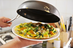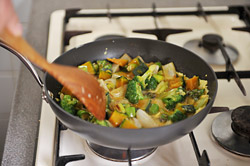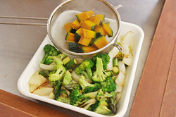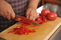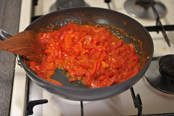 鍋にオリーブオイルをひいて、パプリカを炒めます。